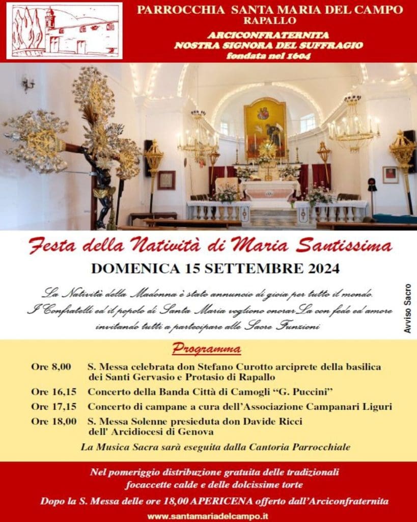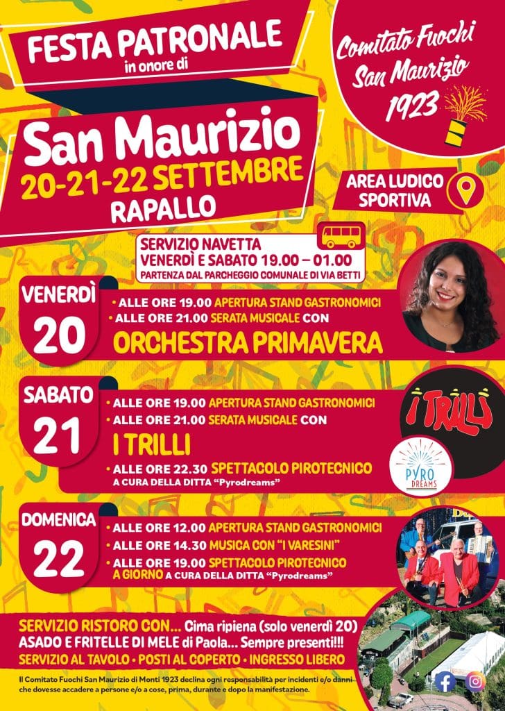 EVENTO SERATA FINALE RAPAX 2024 – SABATO 31 AGOSTO 2024 Sabato 31 agosto 2024, ore 20.45, presso l’area spettacoli di Villa Tigullio, all’interno del Parco Casale, a Rapallo si svolgerà […]