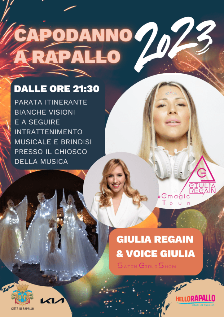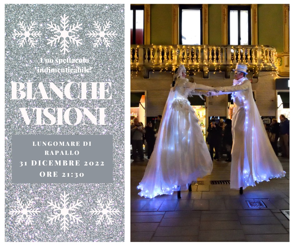 Alle ore 21:30 avrà inizio lo spettacolo itinerante Bianche Visioni, una parata sui trampoli delle regine dell’inverno che percorreranno le vie del centro storico e il lungomare a passo di musica. L’intrattenimento proseguirà presso il Chiosco della musica fino allo scoccare della mezzanotte per un brindisi al nuovo anno.