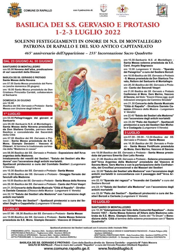 Ecco il Calendario aggiornato delle Manifestazioni in onore di n.s. di Montallegro, Patrona di Rapallo e del suo antico capitaneato.