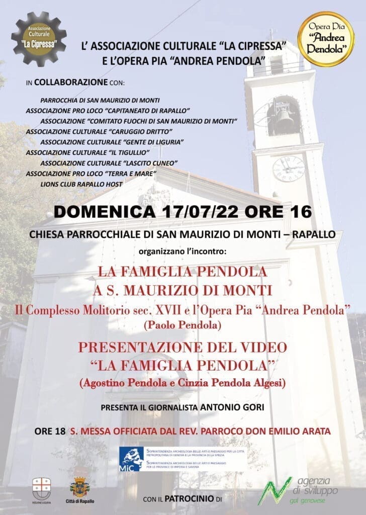 Paolo Pendola racconterà “LA FAMIGLIA PENDOLA A SAN MAURIZIO DI MONTI”, seguirà la S. Messa officiata dal nostro Reverendo Parroco Don Emilio Arata.