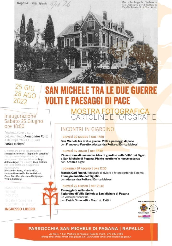 Al ciclo di incontri dedicato al tema delle Testimonianze, variamente declinate, si affianca quello dedicato al tema del Progettare il futuroarte&musica, la mostra fotografica San Michele tra le due guerre I Classici ci parlano ancora? Molti incontri verranno organizzati nel giardino parrocchiale, un bellissimo spazio affacciato sul mare aperto alla Comunità.