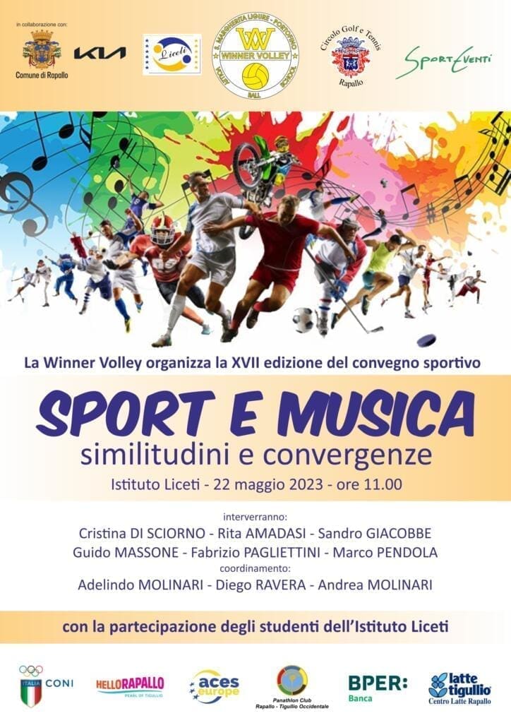 22 Maggio 2023, Istituto Liceti, ore 11 – Incontro con gli studenti. Interverranno musicisti, scenografi, insegnanti di educazione fisica, atleti, per la rappresentanza congiunta di sport e musica.